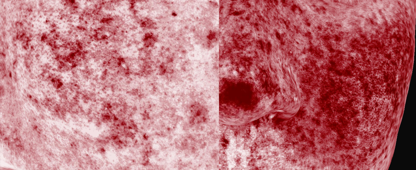 用玫瑰痤疮与普通痤疮3D影像图对比,我们可以看到玫瑰痤疮的“画风”是: