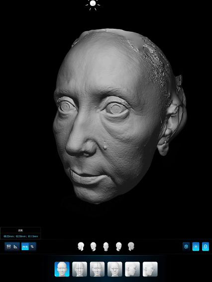 在做增容或减容项目前可用以色美科肌肤影像分析仪的美学设计功能,比如面部年轻态的项目,先使用360°光影诊断+灰度建模,让求美者直观看到面部凹陷、立体等问题。然后用注射模拟的功能,让求美者提前看到个性化方案的效果,让求美者快速理解机构的美学方案。在术后,还可用动态模拟以及容积差计算让求美者看到效果变化,可追溯、可视化的对比,增强客户信任感。