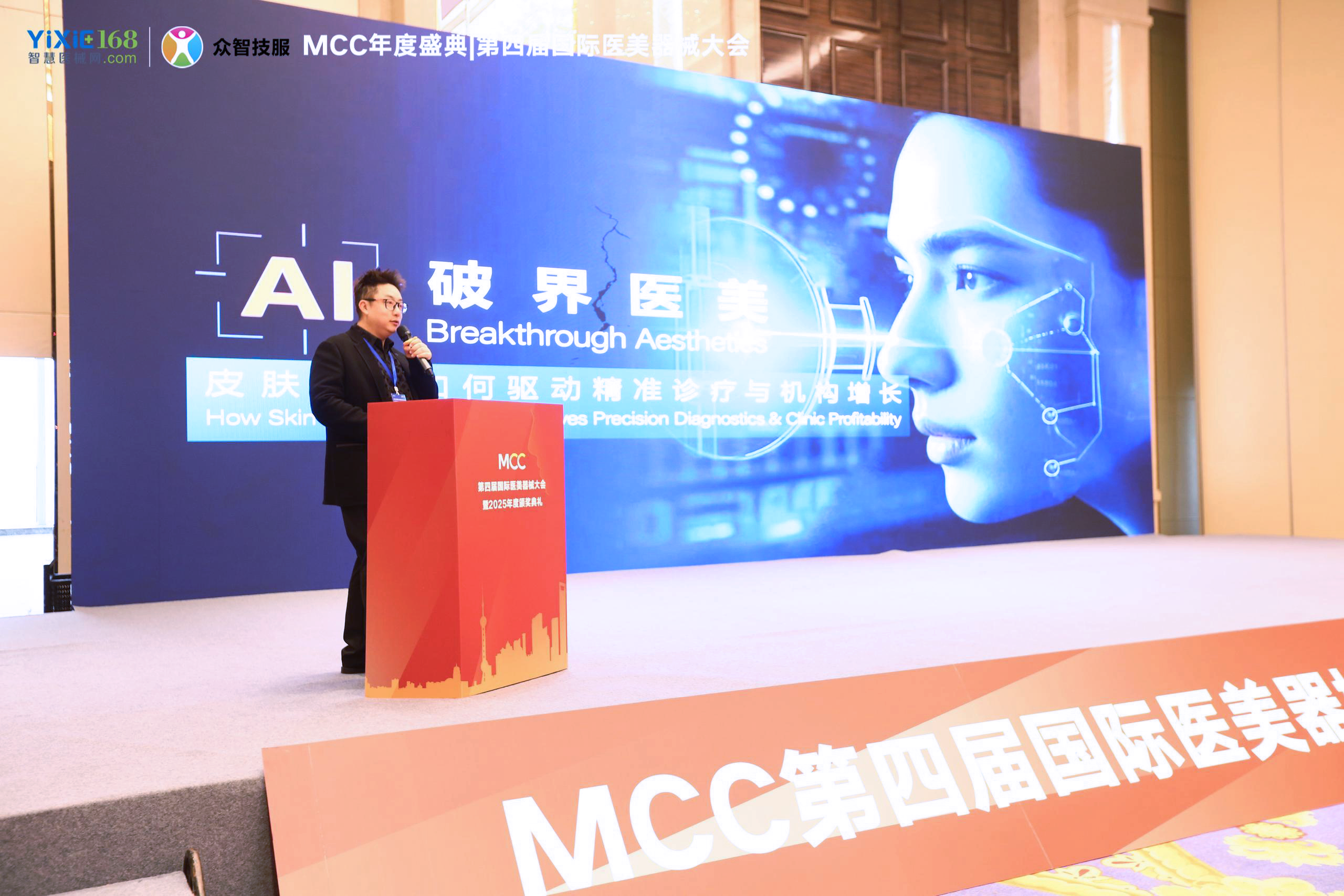 在 MCC 年度盛典第四届国际医美器械大会的 AI 赋能论坛上,以色美科 COO 姚惠君先生受邀出席,并以《AI破界医美:皮肤检测如何驱动精准诊疗与机构增长》为题展开深度分享,内容聚焦行业痛点与前沿方向,成为全场焦点。