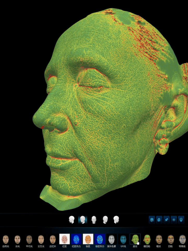 D9MAX方案:科学检测代主观判断。0.02mm高精度3D全脸建模,16张影像图+AI量化症状图可视化呈现面部从皮肤到形态层面的状况、从表皮到真皮隐藏的问题,与求美者建立信任桥梁。