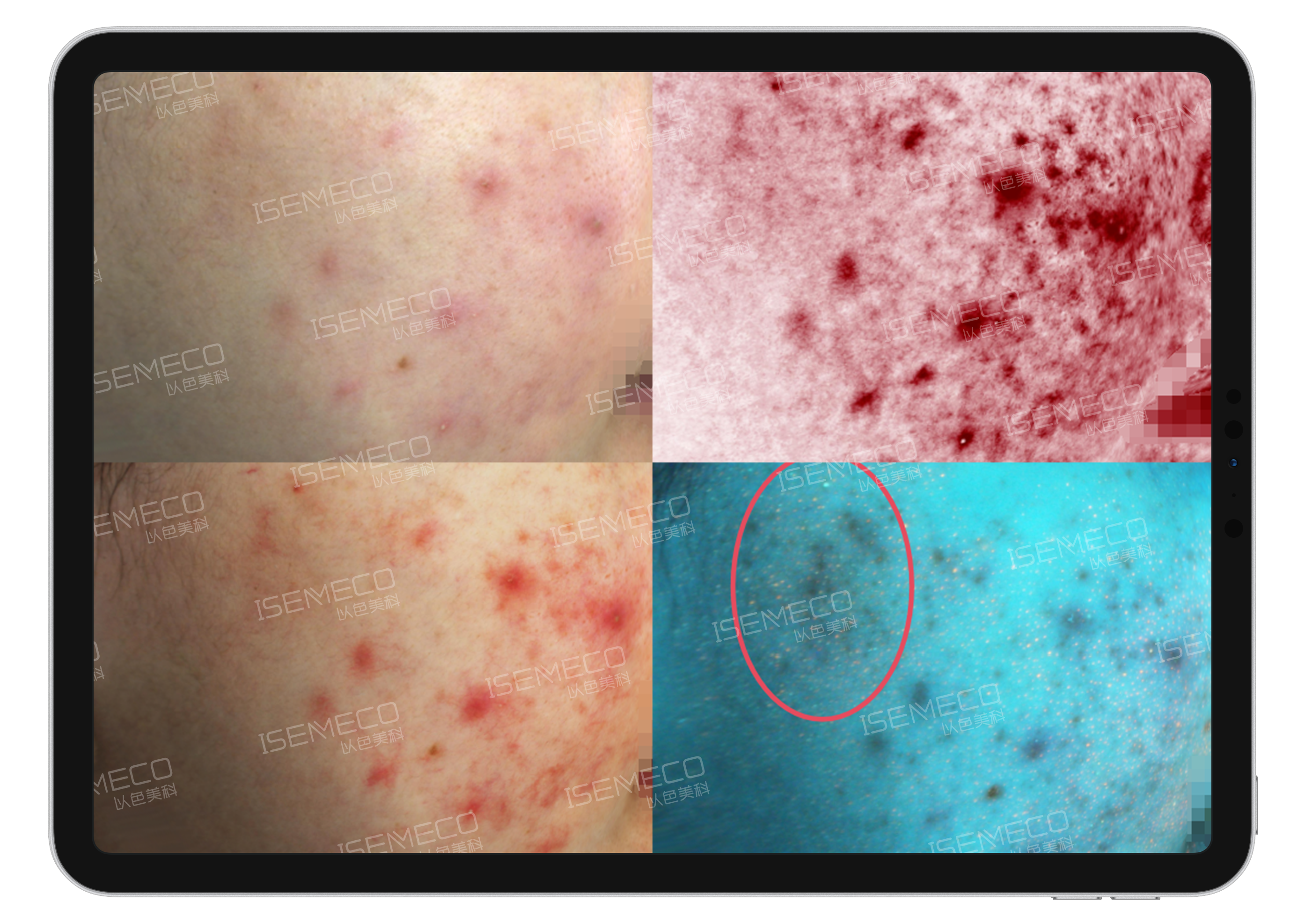 本期,我们解析结节痤疮从检测到后期追踪的诊疗全流程的真实案例,通过以色美科3D皮肤检测仪实现皮肤表层、深层的分层扫描,将不可见的肌肤问题转化为可视化的影像,解决面诊盲点,实现项目成交落地。